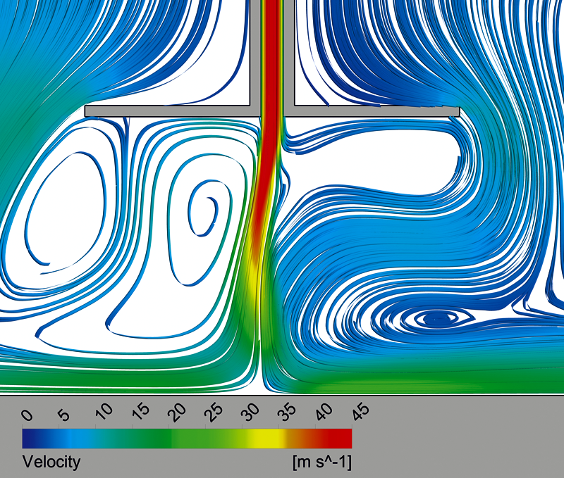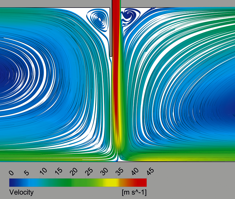 Venti Oelde kann die Düsengeometrie exakt dem jeweiligen Anwendungsbereich anpassen. Mit Hilfe der hauseigenen numerischen Strömungsmechanik (ANSYS CFX) kann das Unternehmen zahllose neue Düsengeometrien rechnerisch miteinander vergleichen und deren Betriebsverhalten detailliert im Voraus ermitteln. Bislang waren dafür unzählige zeitaufwendige Prüfstandsversuche erforderlich. Diese reduzieren sich nun auf ein Minimum, da nur noch die per CFD vorausgewählten Geometrien Prüfstandsversuche durchlaufen. Das spart Zeit, Material und Geld. Zudem sind fertigungsbedingte Ungenauigkeiten, die speziell bei aufwendigen Entwürfen bislang kaum zu ermitteln und kaum zu vermeiden waren, nun praktisch ausgeschlossen.