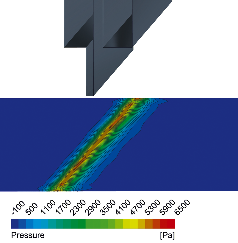 Diese patentierte Technologie von Venti Oelde bringt eine ganze Reihe von Vorteilen: Im Vergleich zum gängigen Düsenspalt ohne Leitkante verbessert sich der Wärmeübergang signifikant. Entsprechend steigt die Trocknungsleistung ganz erheblich. Gleichzeitig sinkt der maximale Druck im Staupunkt, was die Belastung der Bahnoberfläche mindert und das zu trocknende Material schont. Beides – besserer Wärmeübergang und geringerer Druck – verringert die nötige Leistungsaufnahme und senkt den Stromverbrauch des Gebläses. Zusätzlich erhöht sich die komplette Prozessstabilität.