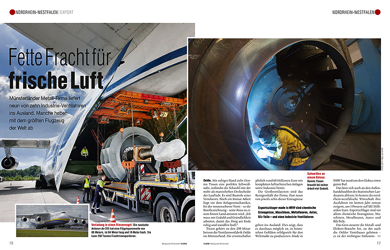 Münsterländer Metall-Firma liefert neun von zehn Industrie-Ventilatoren ins Ausland. Manche heben mit dem größten Flugzeug der Welt ab