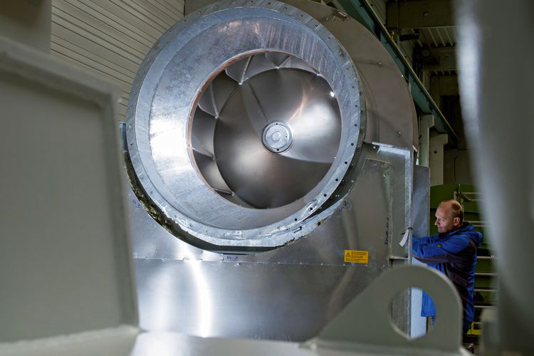 Weil dies so ist, kann so ein robuster "Venti" gut und gerne 50 Tonnen wiegen, bis zu fünf Meter Durchmesser haben – und bis zu 500.000 Euro kosten. Und wenn das Laufrad dann seinen Platz im Gehäuse gefunden hat, steht da ein Klotz von der Größe eines Einfamilienhauses.