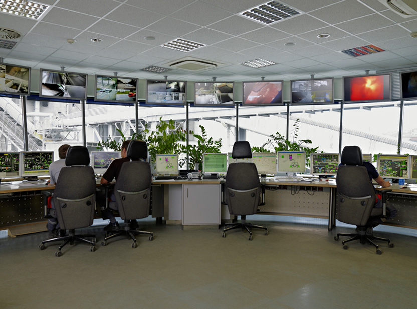 Die Axialventilatoren von Venti Oelde kühlen gezielt die kritischen Bereiche der Drehofen-Oberfläche. Um den optimalen Effekt zu erreichen, stellt Venti Oelde die Axialventilatoren auf Bühnen neben dem Ofen auf. Sie werden stationär oder mobil angebracht und sind schwenkbar und verfahrbar. Über einen Scanner werden die Manteltemperaturen kontinuierlich erfasst und im Leitstand visualisiert. Durch Positionieren und Zuschalten der einzelnen Ventilatoren können kritische Oberflächenbereiche gezielt abgekühlt werden.